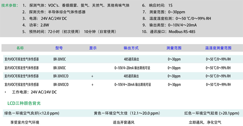 BR-30V0C是一款可揮發(fā)性氣體傳感器,可用于測(cè)量室內(nèi)多種有害氣體,可揮發(fā)性有機(jī)物VOC's如甲苯、甲醛等;生活垃圾所產(chǎn)生的有味氣體如氨氣、硫化氫等;烹調(diào)油煙及生活燃燒物產(chǎn)生的一氧化碳二氧化硫等;天然氣、酒精、潔凈用品、其他有味氣體。主要應(yīng)用場(chǎng)合:家庭、辦公室、影劇院、商店、餐廳、候車廳等。
