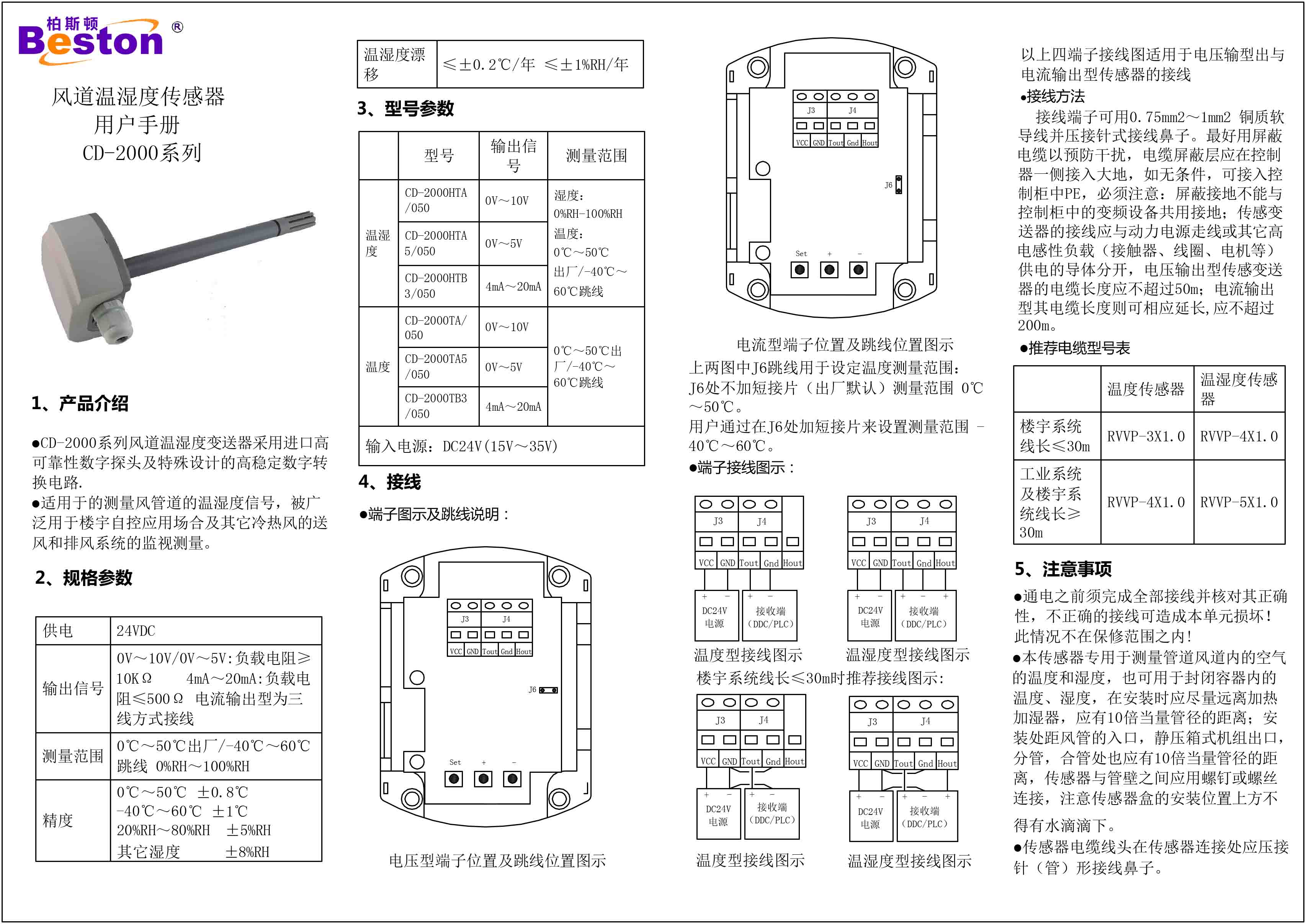 CD-2000系列風(fēng)道溫濕度傳感器